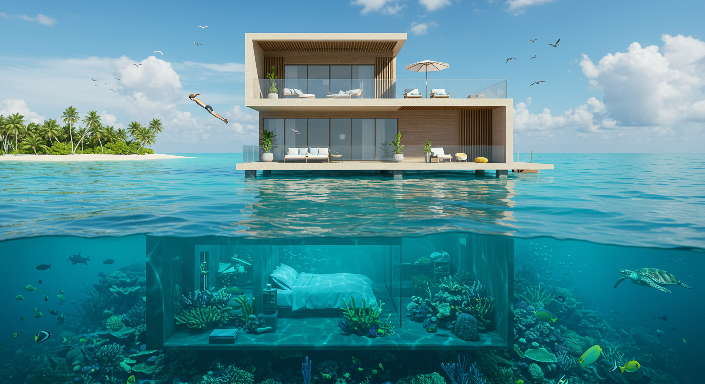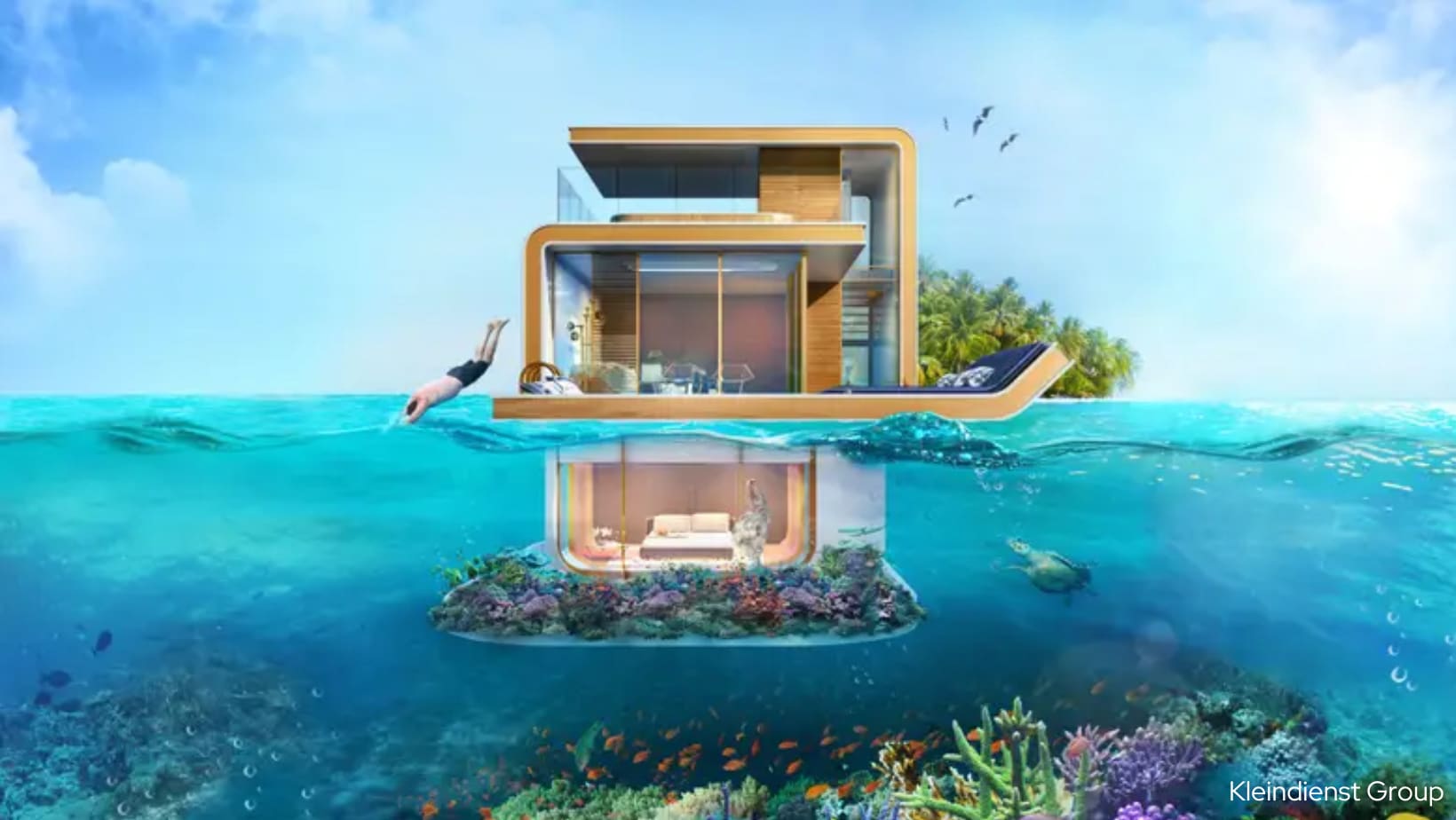Dubai is renowned for pushing the boundaries of luxury, and the Floating Seahorse is no exception. These stunning villas are designed to float on the crystalline waters of the Arabian Gulf. You'll feel like you're living in a saltwater aquarium with three levels, including an underwater bedroom with mesmerizing marine views.