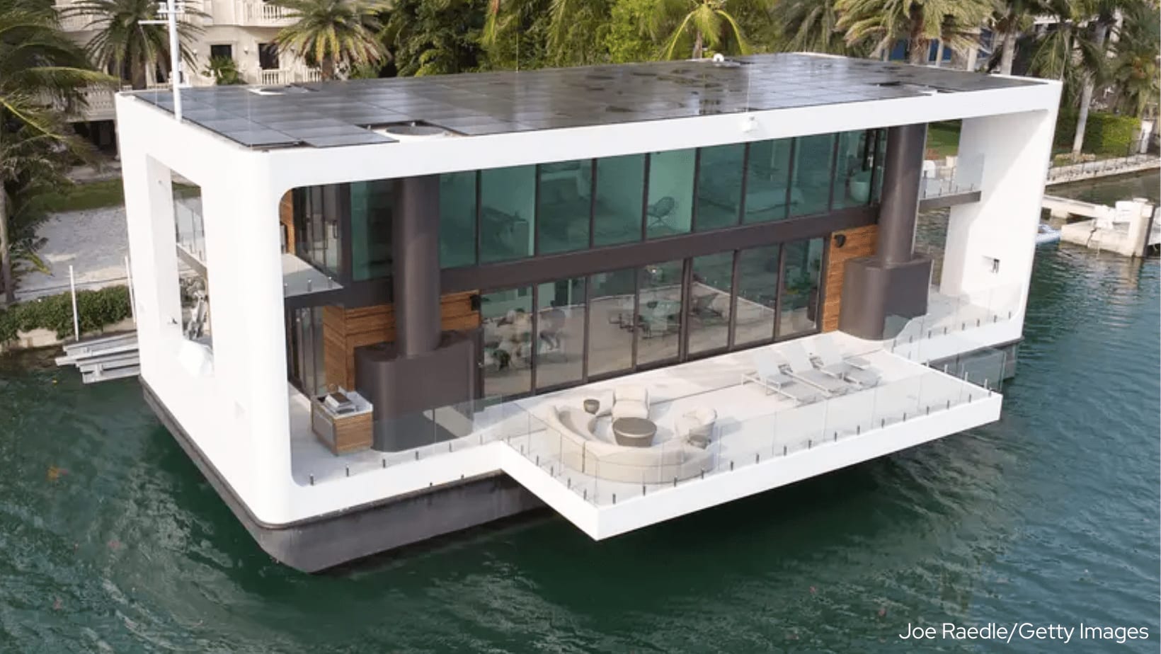Arkup in Miami redefines the concept of a floating mansion. These cutting-edge homes are designed to withstand Category 4 hurricanes and provide an abundant experience with a rooftop terrace, spacious living areas, and a hydraulic lifting system to rise above the waves.