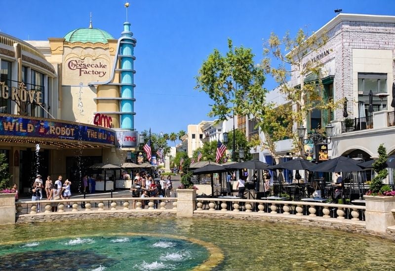 Located in the Fairfax District beside the historic Farmers Market, The Grove has become one of the most recognizable lifestyle destinations in Southern California. Locals visit for dinner, weekend strolls, movies, and holiday events. Tourists add it to their LA must see list.