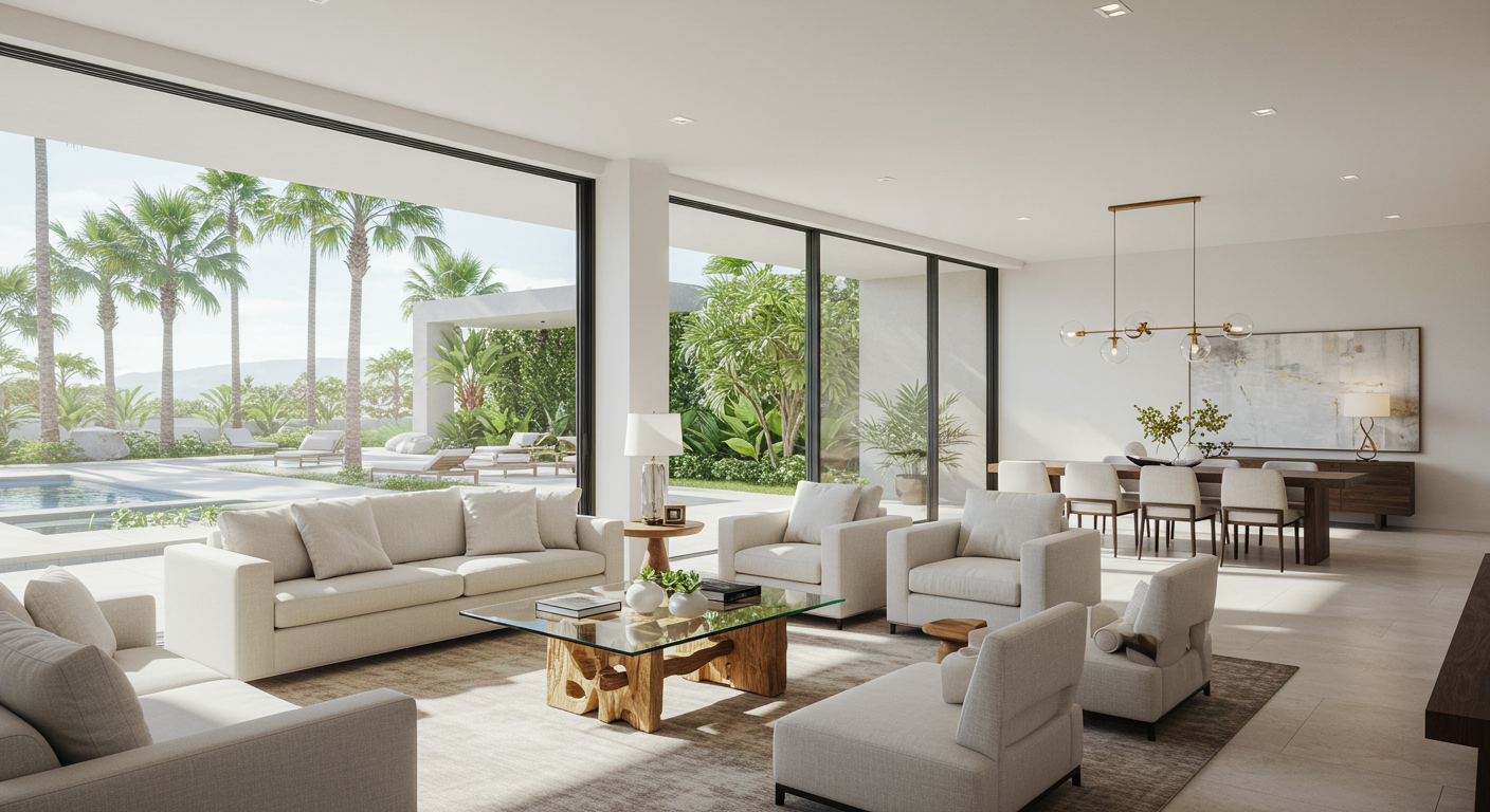 This design trend focuses on simplicity, functionality, and the flow between indoor and outdoor areas. It often involves the use of large windows, glass doors, and neutral color palettes to create a sense of calm and harmony.